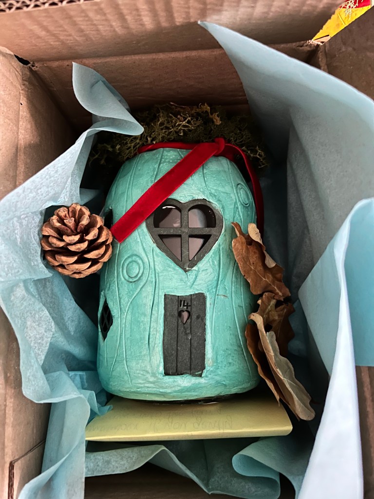 Fairy houses. All are unique and have their own number. They light up at night. This guarantees a peaceful slumber when the fairies will look after you. £15. All come with a storybook about why the fairies made the houses. Plus p&p.