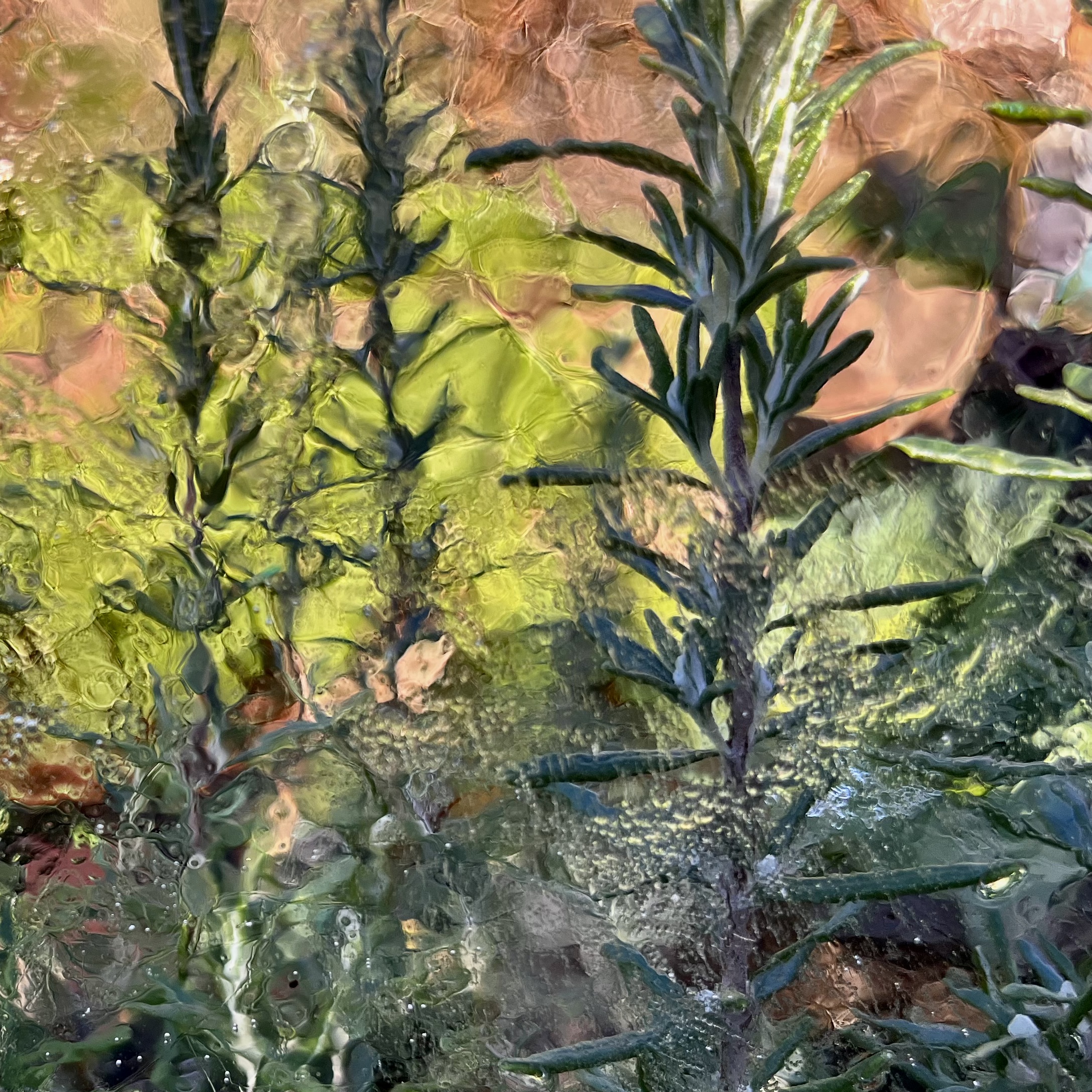 Created in nature’s studio (my garden), ice photography studies light, colour, and form. Here is an example of the herbs and flowers I have photographed through crystal clear ice. Sun and ice are contrasting elements which makes the timing and accuracy of framing these images crucial.